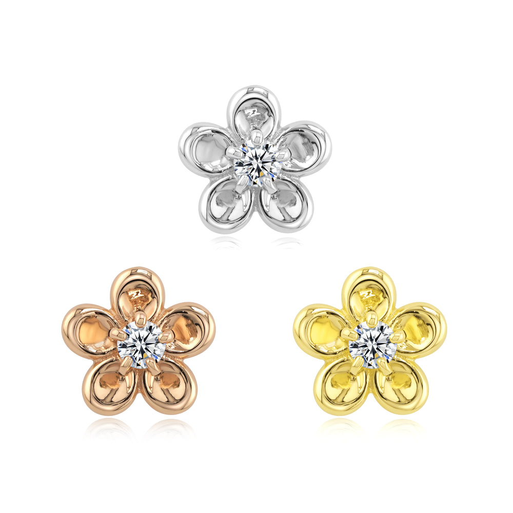 Step into the garden of style with our Flora threadless end, showcasing a dazzling clear CZ gem at its heart. Transform your look with a flourish of floral beauty!